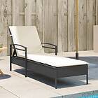 vidaXL Bain de soleil avec coussin noir rotin 63x200x81cm