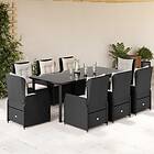 vidaXL Matgrupp för trädgården med dynor 9 delar svart konstrottning 3262839