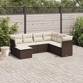 vidaXL Trädgårdssoffset med dynor 7 delar brun konstrotting 3249832