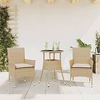 vidaXL Matgrupp för trädgård med dynor 3 delar beige konstrotting&glas 3278625