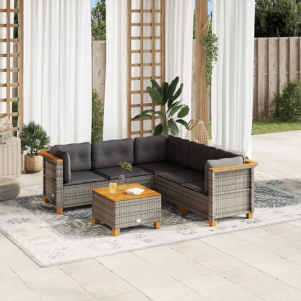 vidaXL Loungegrupp för trädgården med dynor 6 delar grå konstrotting 3261828