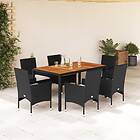 vidaXL Matgrupp för trädgården med dynor 7 delar svart konstrotting 3278666