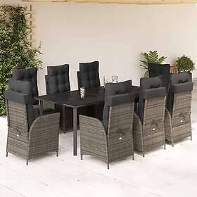 vidaXL Matgrupp för trädgården med dynor 9 delar grå konstrotting 3213233
