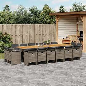 vidaXL Matgrupp för trädgården med dynor 17 delar grå konstrotting 3277837