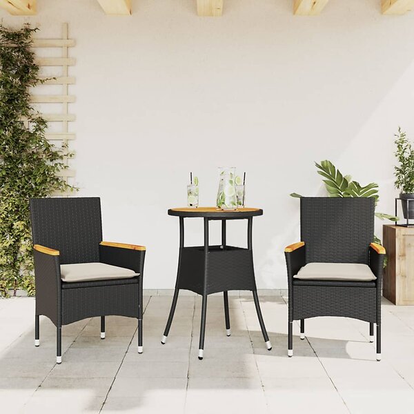 vidaXL Matgrupp för trädgården med dynor 3 delar svart konstrotting 3278717