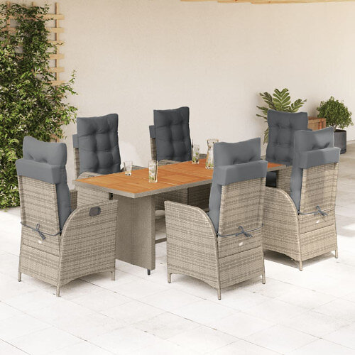 vidaXL Matgrupp för trädgården med dynor 7 delar grå konstrotting 3213142
