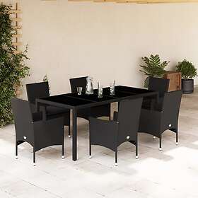 vidaXL Matgrupp för trädgård med dynor 7 delar svart konstrotting&glas 3278547