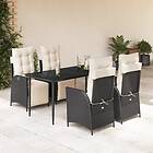 vidaXL Matgrupp för trädgården med dynor 5 delar svart konstrottning 3213381