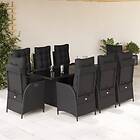 vidaXL Matgrupp för trädgården med dynor 9 delar svart konstrottning 3213353