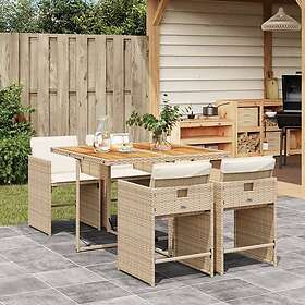 vidaXL Matgrupp för trädgården med dynor 5 delar beige konstrotting 3277851