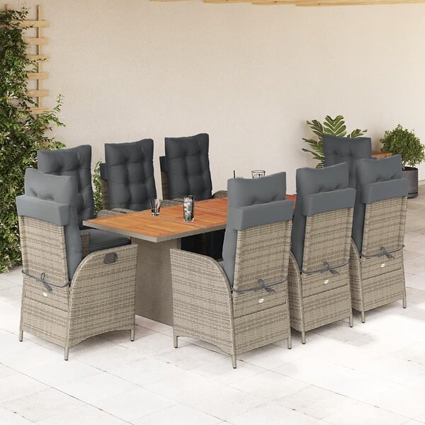 vidaXL Matgrupp för trädgården med dynor 9 delar grå konstrotting 3213371