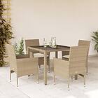vidaXL Matgrupp för trädgård med dynor 5 delar beige konstrotting&glas 3278568