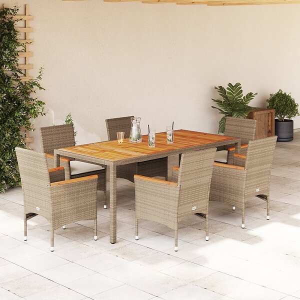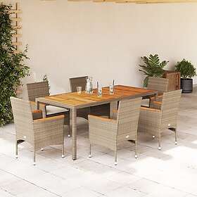 vidaXL Matgrupp för trädgården med dynor 7 delar beige konstrotting 3278643