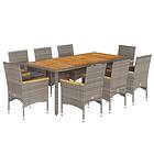 vidaXL Matgrupp för trädgården med dynor 9 delar grå konstrotting 3278638