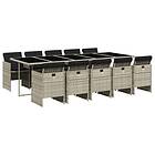 vidaXL Matgrupp för trädgården med dynor 11 delar ljusgrå konstrotting 3277702