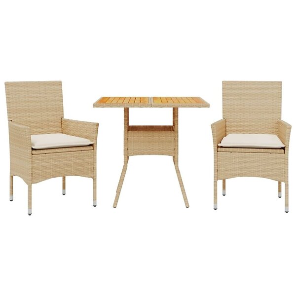 vidaXL Matgrupp för trädgården 3 delar med dynor beige konstrotting 3278715