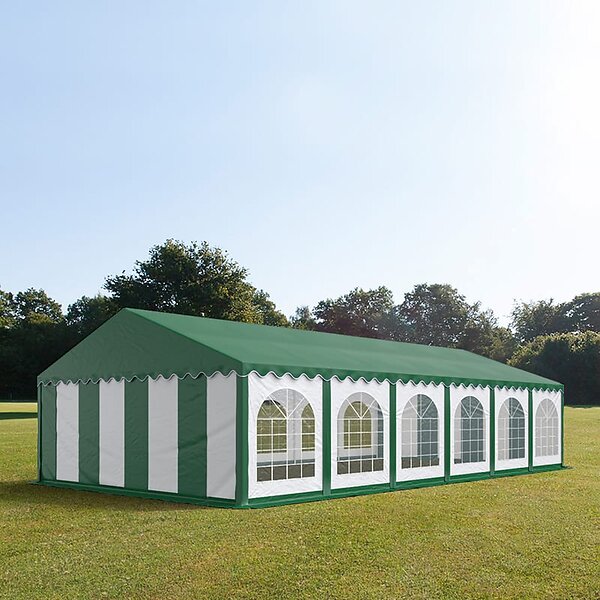 TOOLPORT 6x12 m partytält, med bottenram, PVC 750, grön-vit (7164)