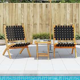 vidaXL Hopfällbara trädgårdsstolar 2 st med bord svart massivt trä 3214219