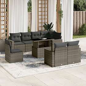 vidaXL Loungegrupp för trädgården m dynor 9 delar grå konstrotting 3273615