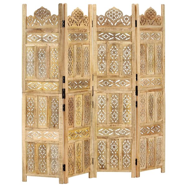 vidaXL Rumsavdelare 4 paneler handsnidad 160x165 cm massivt mangoträ 285316