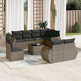 vidaXL Loungegrupp för trädgården m dynor 9 delar grå konstrotting 3221649