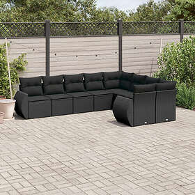 vidaXL Loungegrupp för trädgården m dynor 9 delar svart konstrottning 3221834