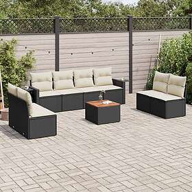 vidaXL Loungegrupp för trädgården m dynor 9 delar svart konstrottning 3224523