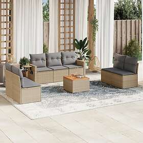 vidaXL Matgrupp för trädgården med dynor 7 delar beige konstrotting 3221788