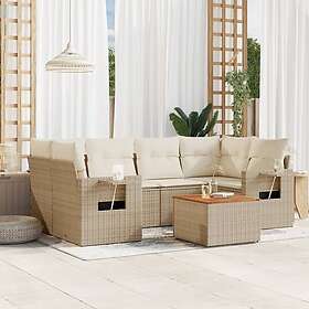 vidaXL Matgrupp för trädgården med dynor 7 delar beige konstrotting 3224462
