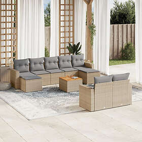 vidaXL Soffgrupp för trädgård med dynor 10 delar beige konstrotting 3224337