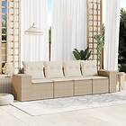 vidaXL Soffgrupp för trädgård med dynor 4 delar beige konstrotting 3222277