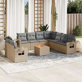 vidaXL Loungegrupp för trädgården m. dynor 11 delar beige konstrotting 3224855