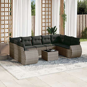vidaXL Soffgrupp för trädgården med dynor 10 delar grå konstrotting 3221809