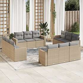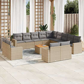 vidaXL Soffgrupp för trädgården 14 delar med dynor beige konstrotting 3224400