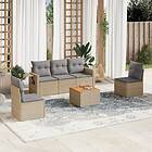 vidaXL Soffgrupp för trädgården med dynor 6 delar beige konstrotting 3224505
