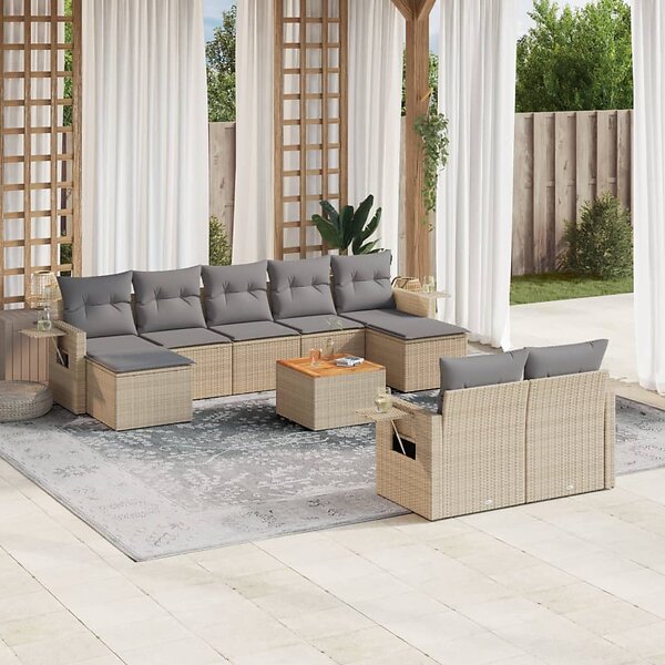 vidaXL Soffgrupp för trädgård med dynor 10 delar beige konstrotting 3224778