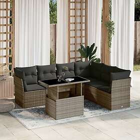 vidaXL Soffgrupp för trädgården med dynor 7 delar grå konstrotting 3266610