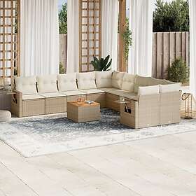 vidaXL Loungegrupp för trädgården m. dynor 11 delar beige konstrotting 3224756