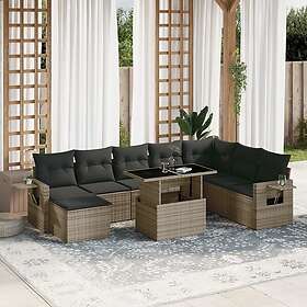 vidaXL Loungegrupp för trädgården m dynor 9 delar grå konstrotting 3268100
