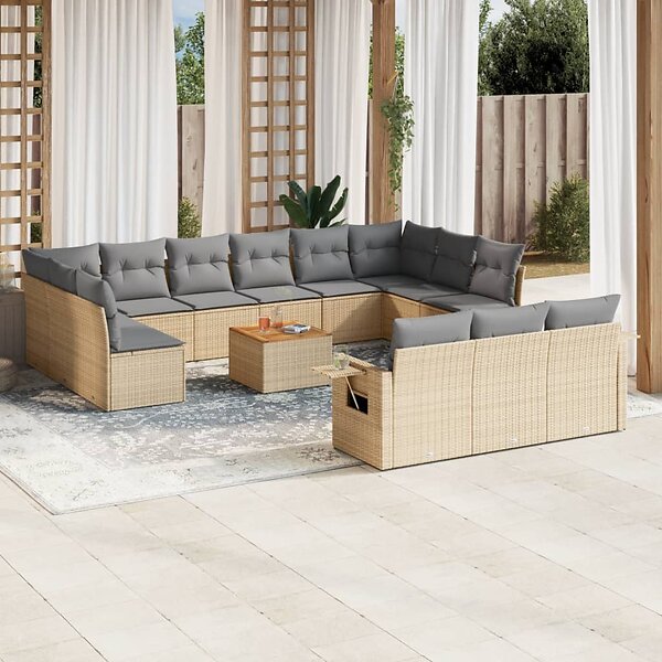 vidaXL Soffgrupp för trädgården 14 delar med dynor beige konstrotting 3224806
