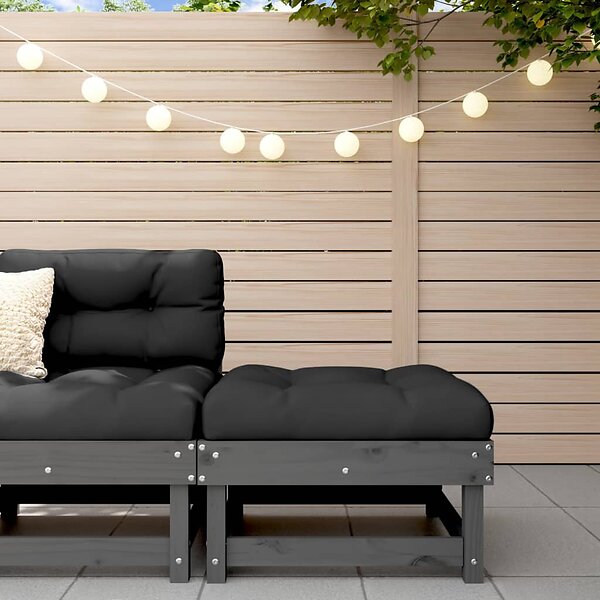 vidaXL Fotpall med dyna för trädgården grå massiv furu 825438