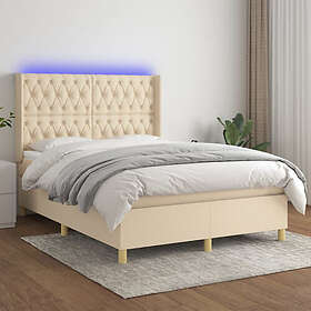 vidaXL Ramsäng med madrass & LED gräddvit 140x190 cm tyg