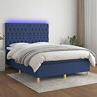 vidaXL Ramsäng med madrass & LED blå 140x190 cm tyg