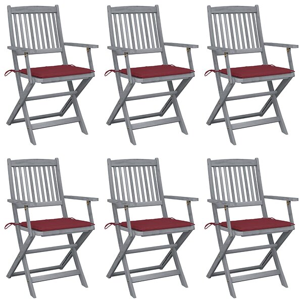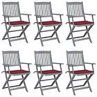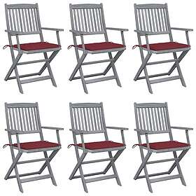 vidaXL Hopfällbara trädgårdsstolar 6 st med dynor massivt akaciaträ 3065416