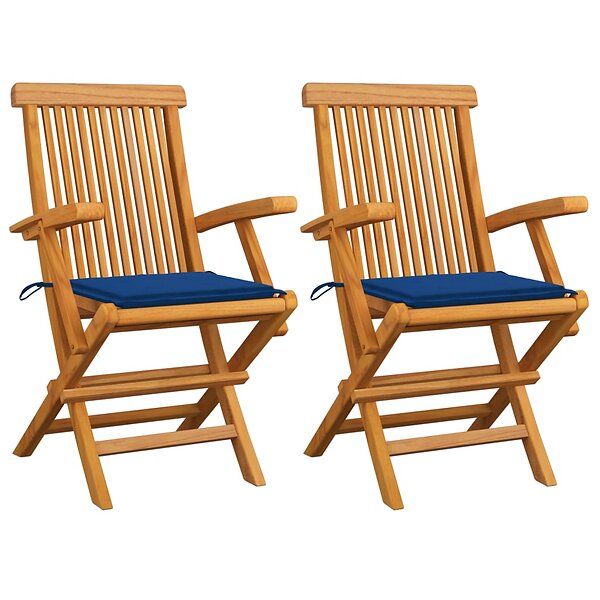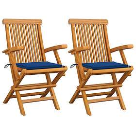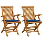 vidaXL Trädgårdsstolar med kungsblåa dynor 2 st massivt teakträ 3062497