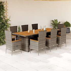 vidaXL Matgrupp för trädgården med dynor 9 delar grå konstrotting 3277544
