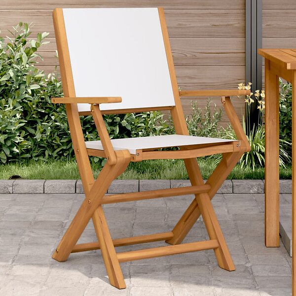 vidaXL Hopfällbara trädgårdsstolar 2 st massiv akacia och tyg gräddvit 367669