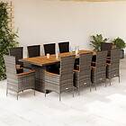 vidaXL Matgrupp för trädgården med dynor 11 delar grå konstrotting 3277550