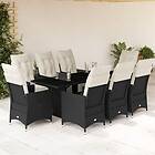 vidaXL Matgrupp för trädgården med dynor 9 delar svart konstrottning 3276870