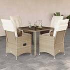 vidaXL Matgrupp för trädgården med dynor 5 delar beige konstrotting 3276800